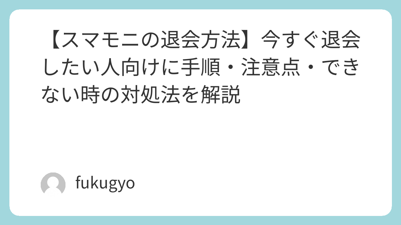 【スマモニの退会方法】今すぐ退会したい人向けに手順・注意点・できない時の対処法を解説