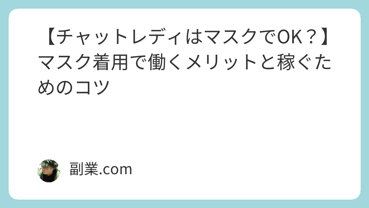 本記事では、チャットレディがマスクで働くメリット・注意点・稼ぐコツをわかりやすく解説します。