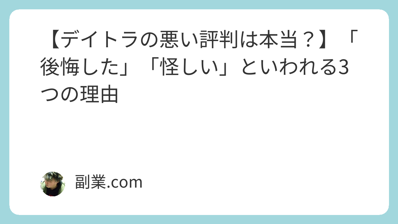 合っていれば、デイトラは非常にコスパの高い選択肢となりますが、合っていなければ「思ったより使えなかった」「後悔した」と感じる可能性もあります。