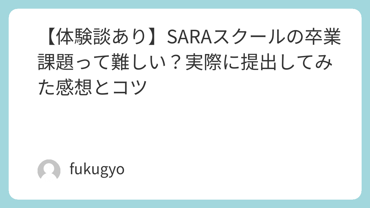 そんな疑問を持つ方のために、今回は実際にSARAスクールを受講して卒業課題を提出した体験談を紹介します。