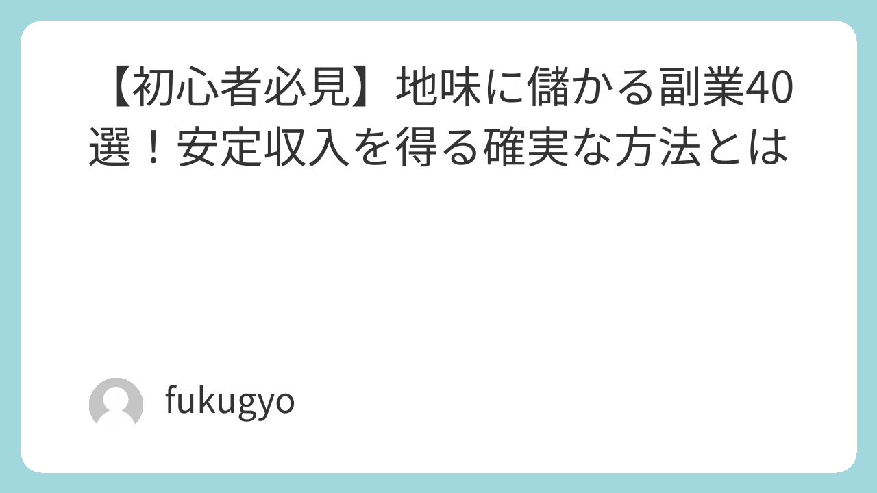 副業を始めたいけれど、「どれを選べばいいか分からない」「派手な投資や高リスクな方法は避けたい」と悩んでいませんか?実は、世の中には目立たないものの確実に収入を得られる「地味に儲かる副業」が数多く存在します。これらの副業は、安定した収入が期待でき、初期投資も少なく、自分のペースで進められるという共通の特徴があります。今回は、初心者でも始めやすい地味に儲かる副業を40選ご紹介し、成功するためのポイントや始め方まで詳しく解説します。あなたのライフスタイルに合った副業を見つけて、新たな収入源を築いていきましょう。