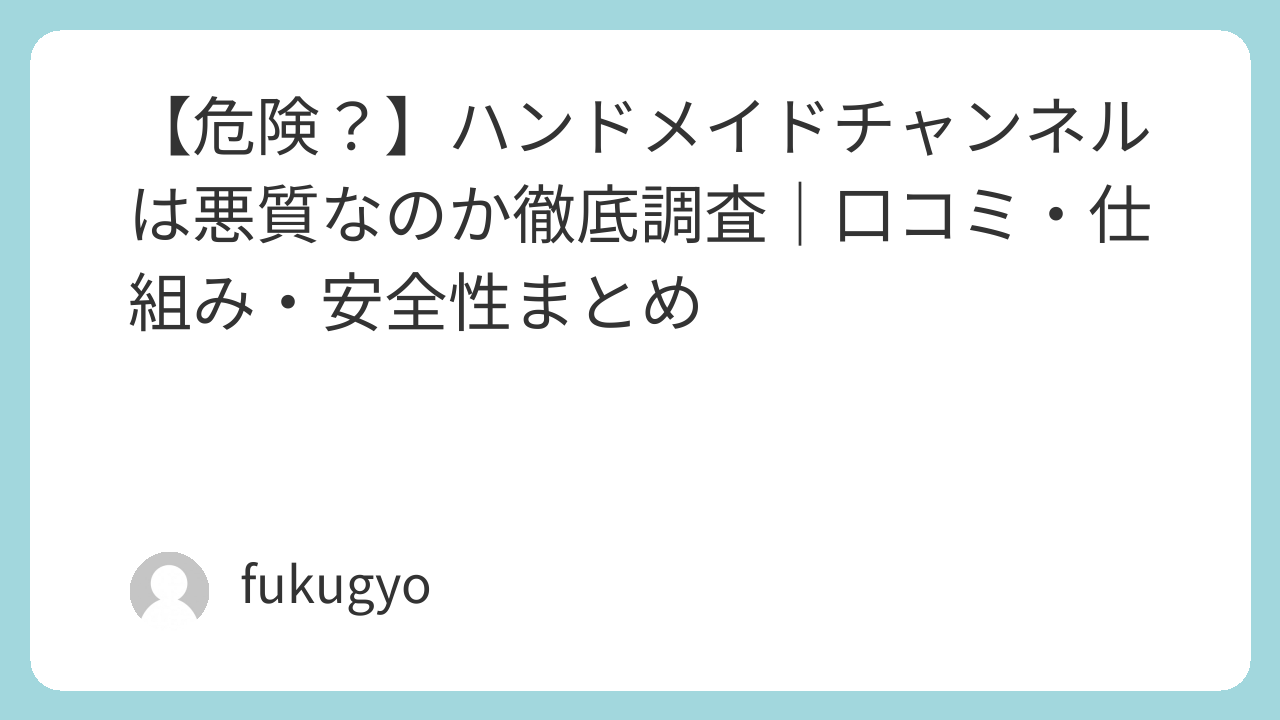 ハンドメイドチャンネルの実態・悪質と噂される理由・口コミ・安全性・注意点を徹底調査して解説します。