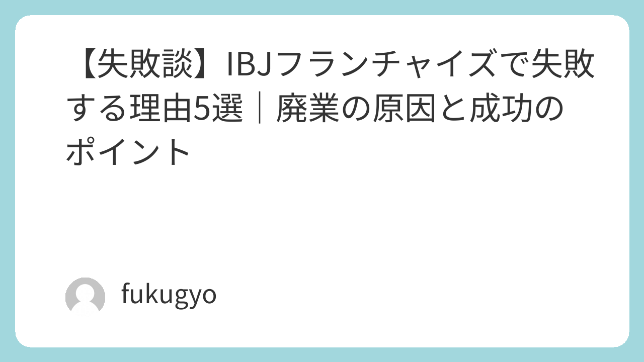 IBJフランチャイズで失敗する理由・廃業の原因・成功するための具体策を、現場目線でわかりやすく解説します。