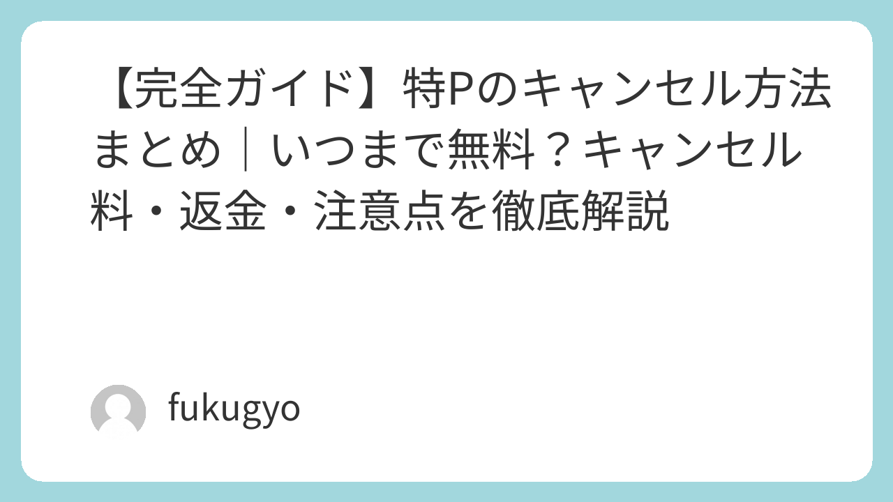 【完全ガイド】特Pのキャンセル方法まとめ|いつまで無料?キャンセル料・返金・注意点を徹底解説