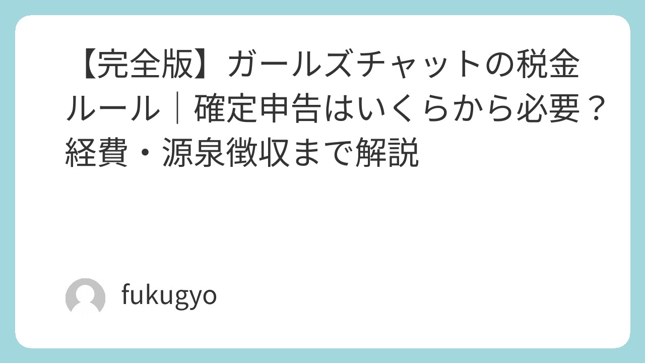 【完全版】ガールズチャットの税金ルール|確定申告はいくらから必要?経費・源泉徴収まで解説