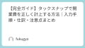タックスナップの画面構成やボタン名はバージョンによって変わる可能性がありますが、