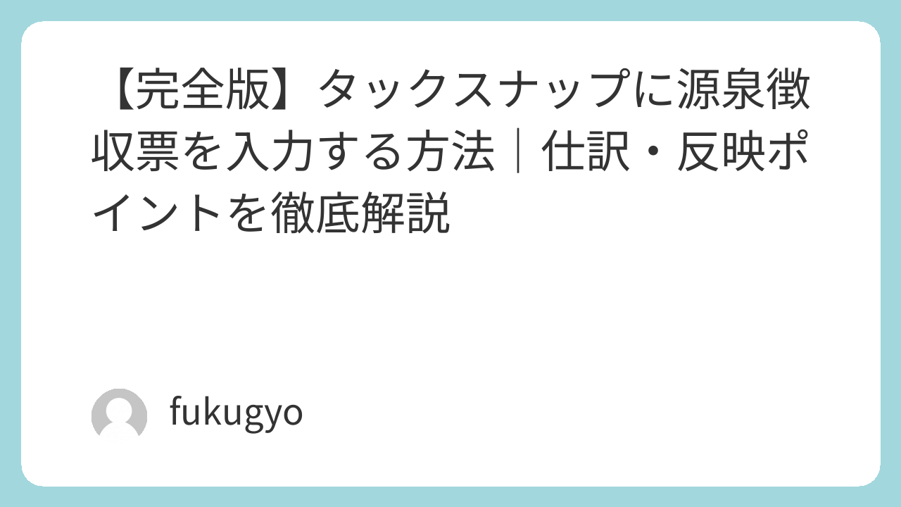 【完全版】タックスナップに源泉徴収票を入力する方法|仕訳・反映ポイントを徹底解説