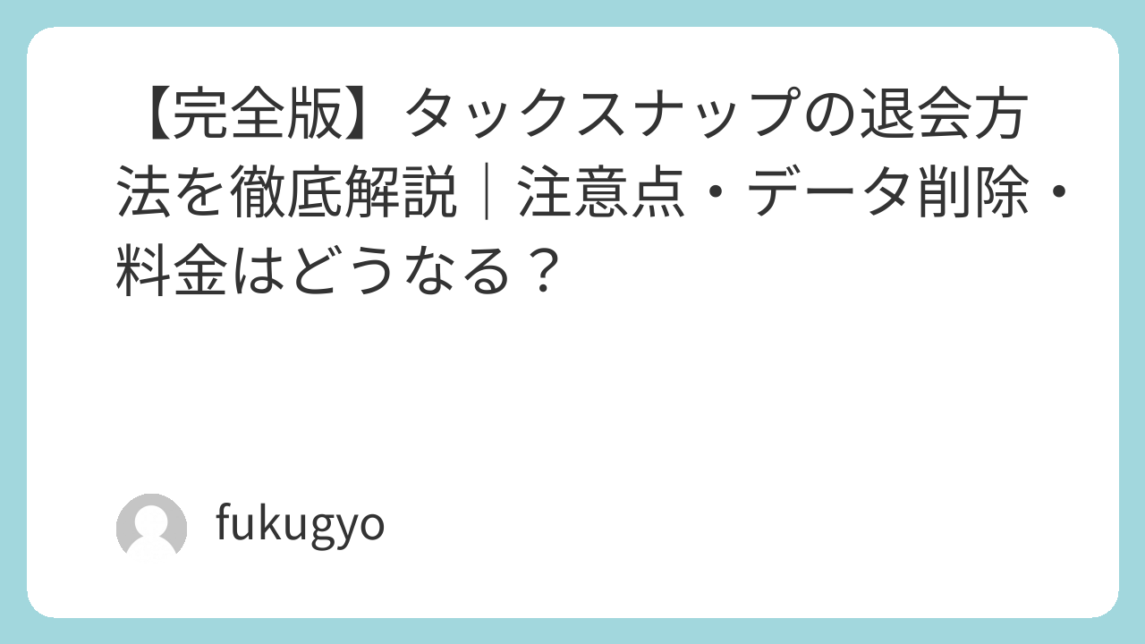 【完全版】タックスナップの退会方法を徹底解説|注意点・データ削除・料金はどうなる?