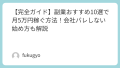 これらのポイントをしっかりと把握することで、副業を効果的かつスムーズにスタートできるはずです。副業の利点を最大限に活かし、健全な働き方を実現しましょう。