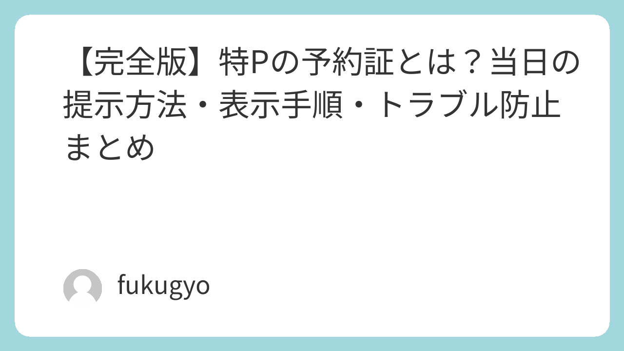 【完全版】特Pの予約証とは?当日の提示方法・表示手順・トラブル防止まとめ
