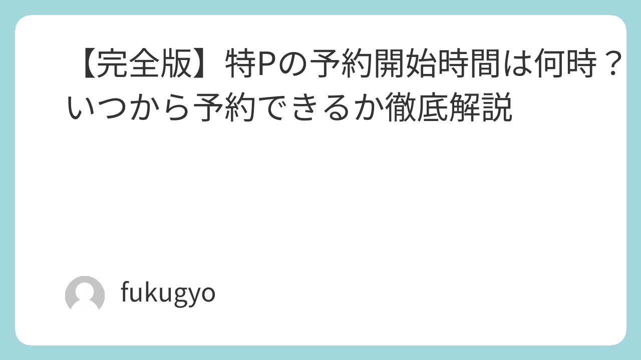 特Pの予約開始時間の仕組み・何日前から開くか・時間帯の傾向・取りやすくなる裏ワザを分かりやすく解説します。