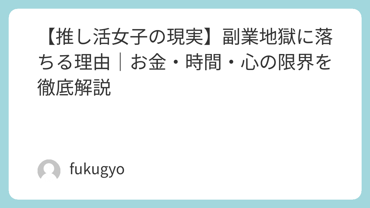 この記事では、推し活女子が副業地獄に落ちる理由と、