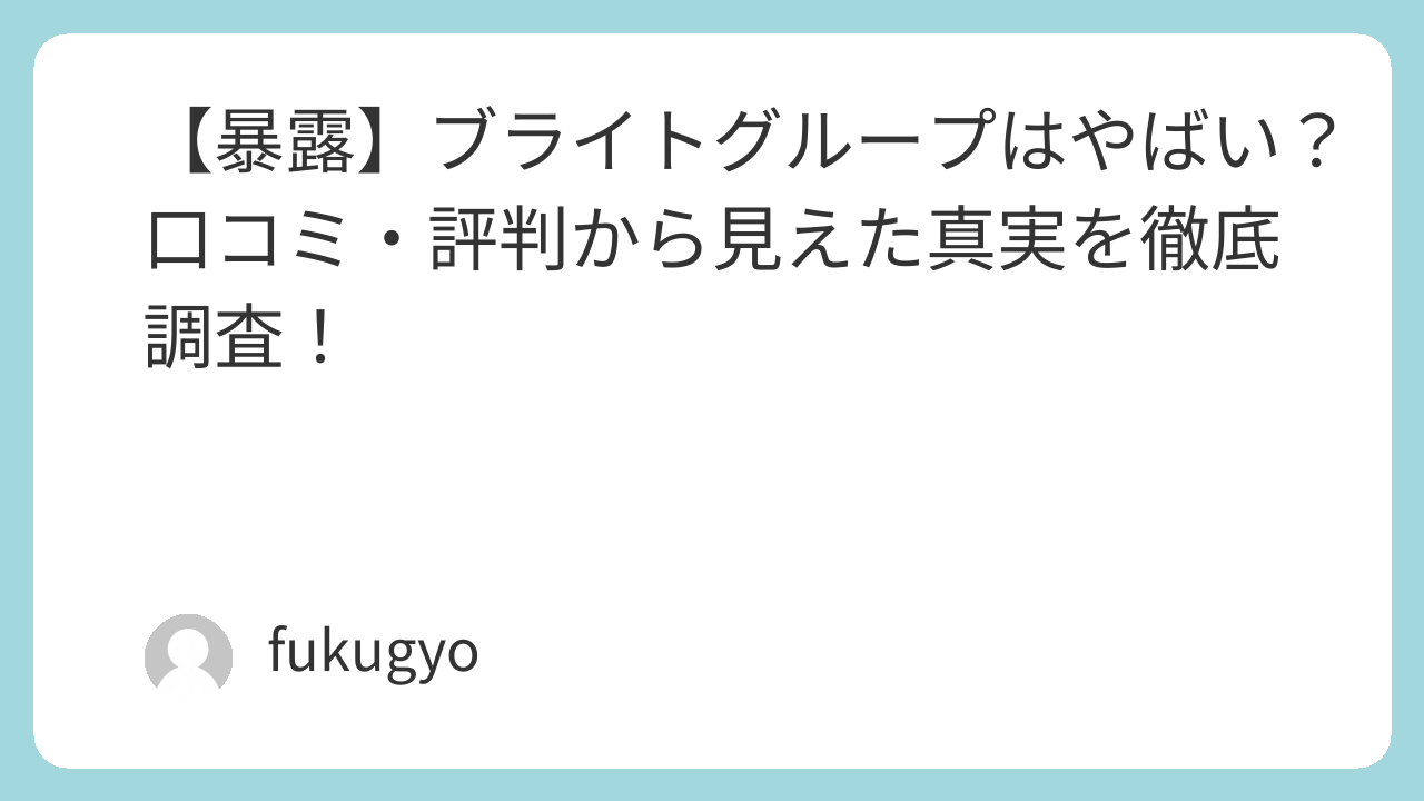 この記事では、ブライトグループが“やばい”と噂される理由を徹底調査し、