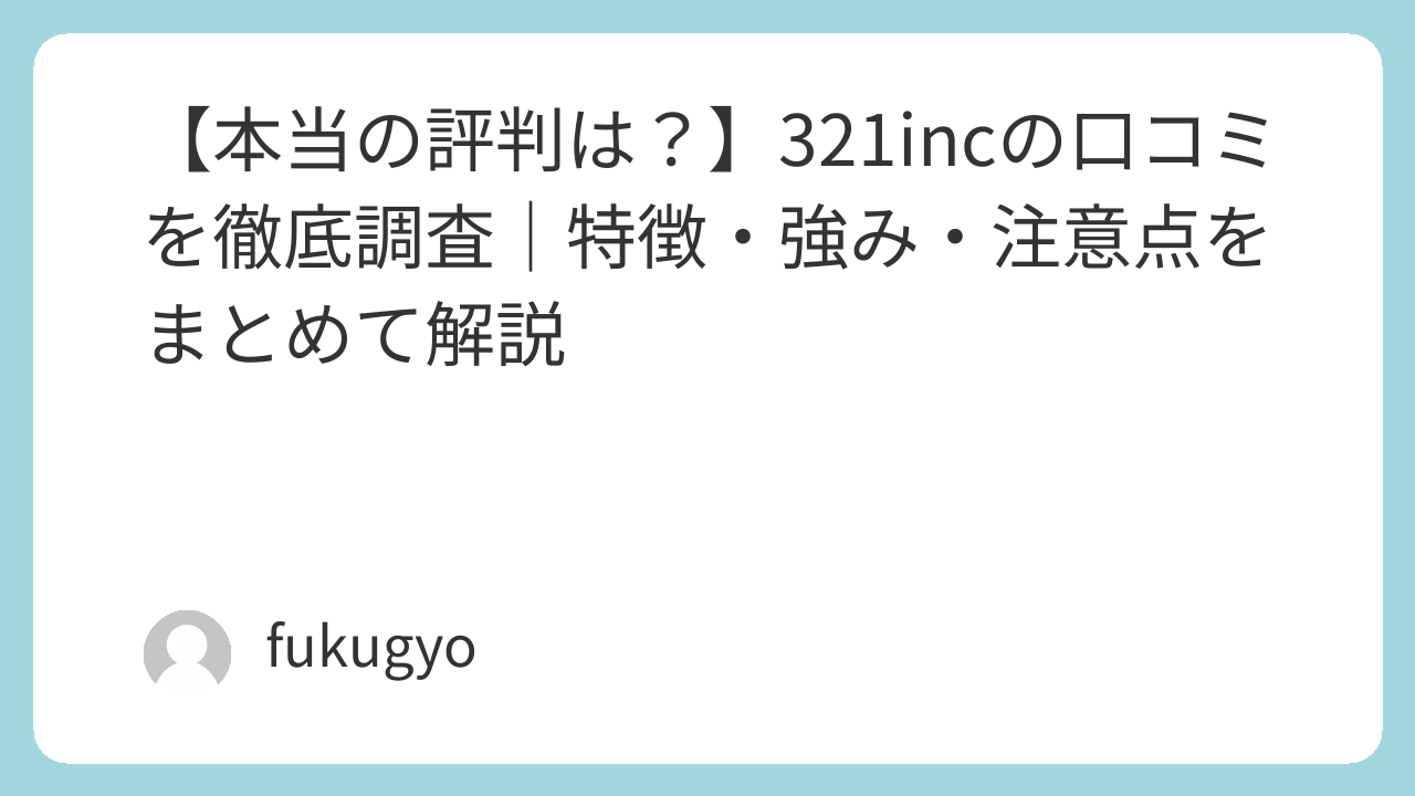 そんなモヤモヤを感じて 「321inc 評判」 と検索している人も多いはずです。