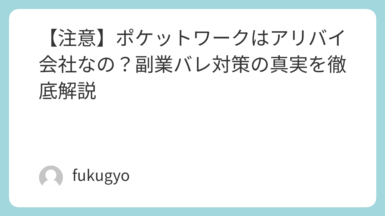 【注意】ポケットワークはアリバイ会社なの?副業バレ対策の真実を徹底解説