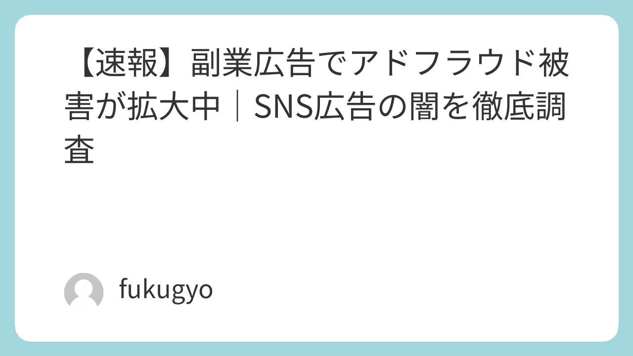 【速報】副業広告でアドフラウド被害が拡大中|SNS広告の闇を徹底調査