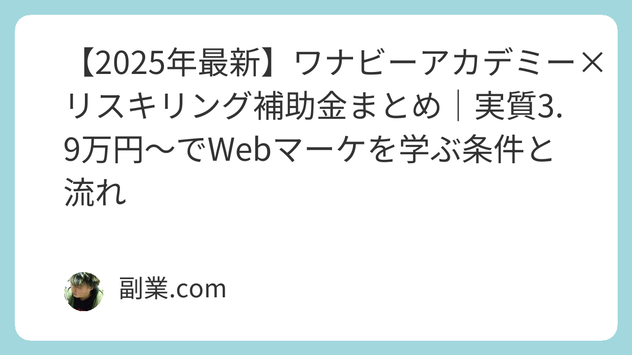 【2025年最新】ワナビーアカデミー×リスキリング補助金まとめ|実質3.9万円〜でWebマーケを学ぶ条件と流れ