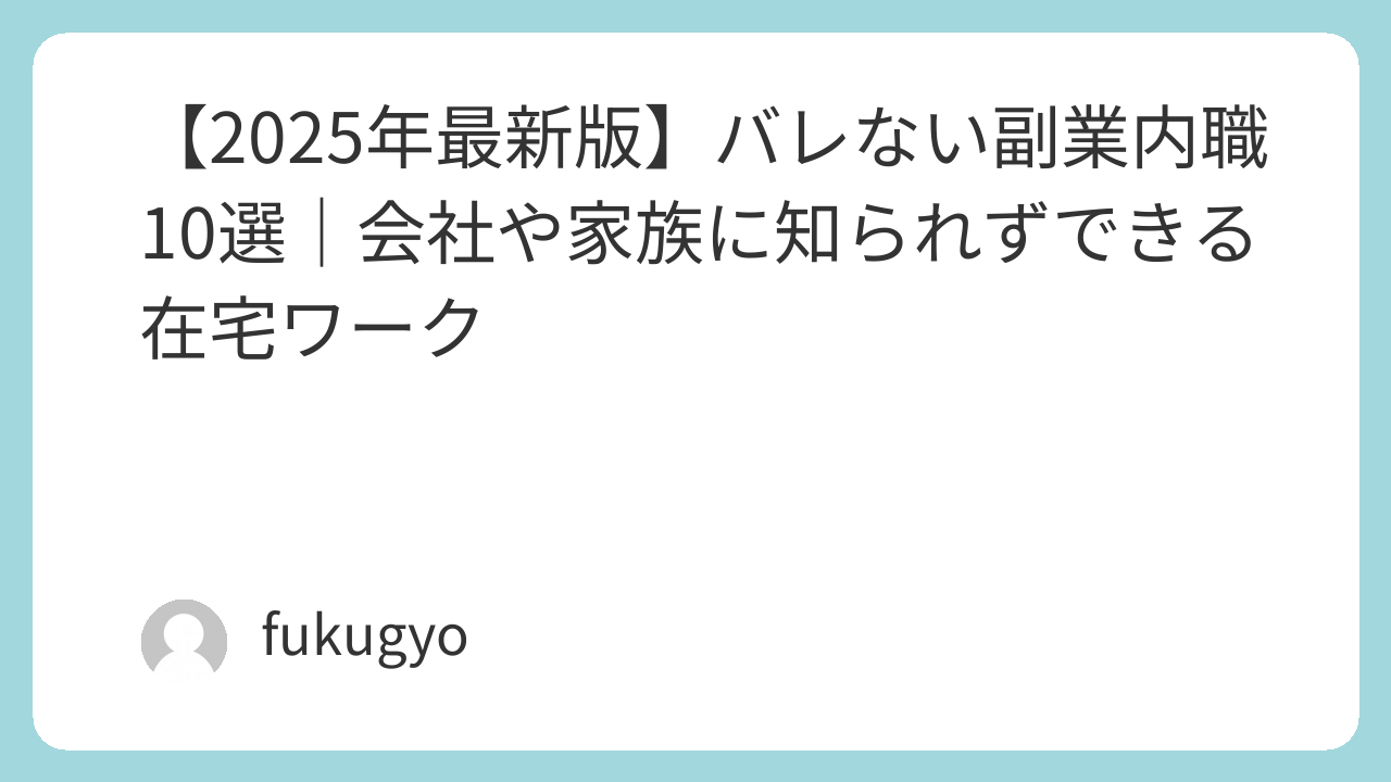 この記事では、2025年最新版として、バレない副業内職10選と安全に働くための対策を詳しく解説します。