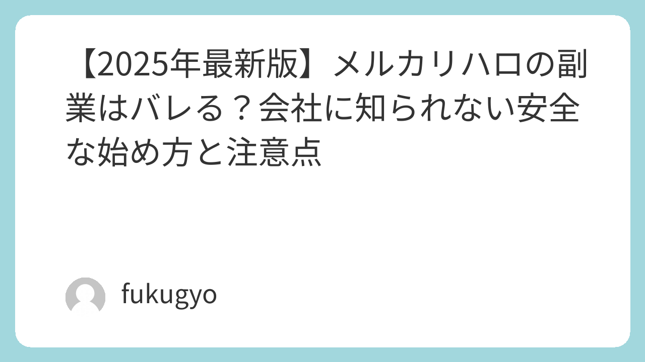 【2025年最新版】メルカリハロの副業はバレる?会社に知られない安全な始め方と注意点
