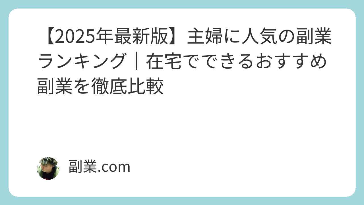 家事・育児の合間に収入を得たいと考える人が増え、主婦の間で「副業ランキング」が注目されています。スキルなし・未経験からでも始められる副業が多く、家庭と両立しながら収入アップできるチャンスが広がっています。