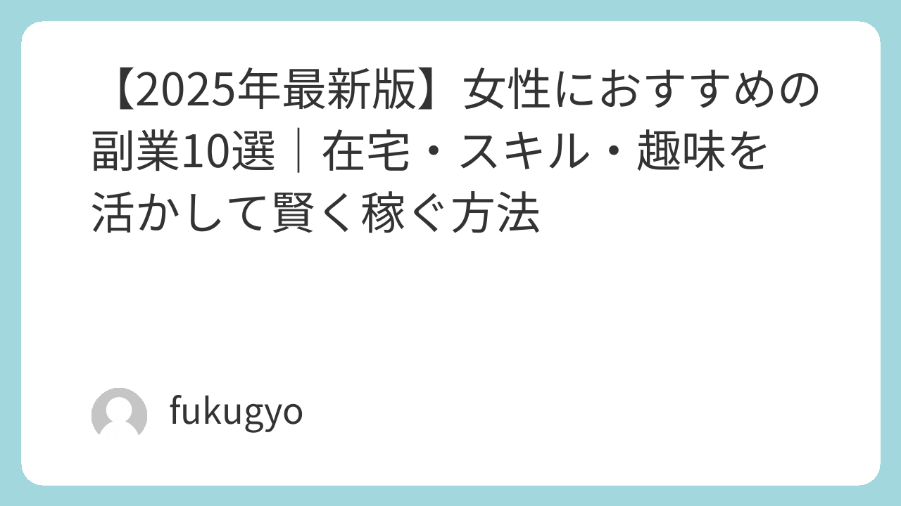 この記事では、2025年に「女性が無理なく・安全に」できるおすすめ副業10選を紹介します。