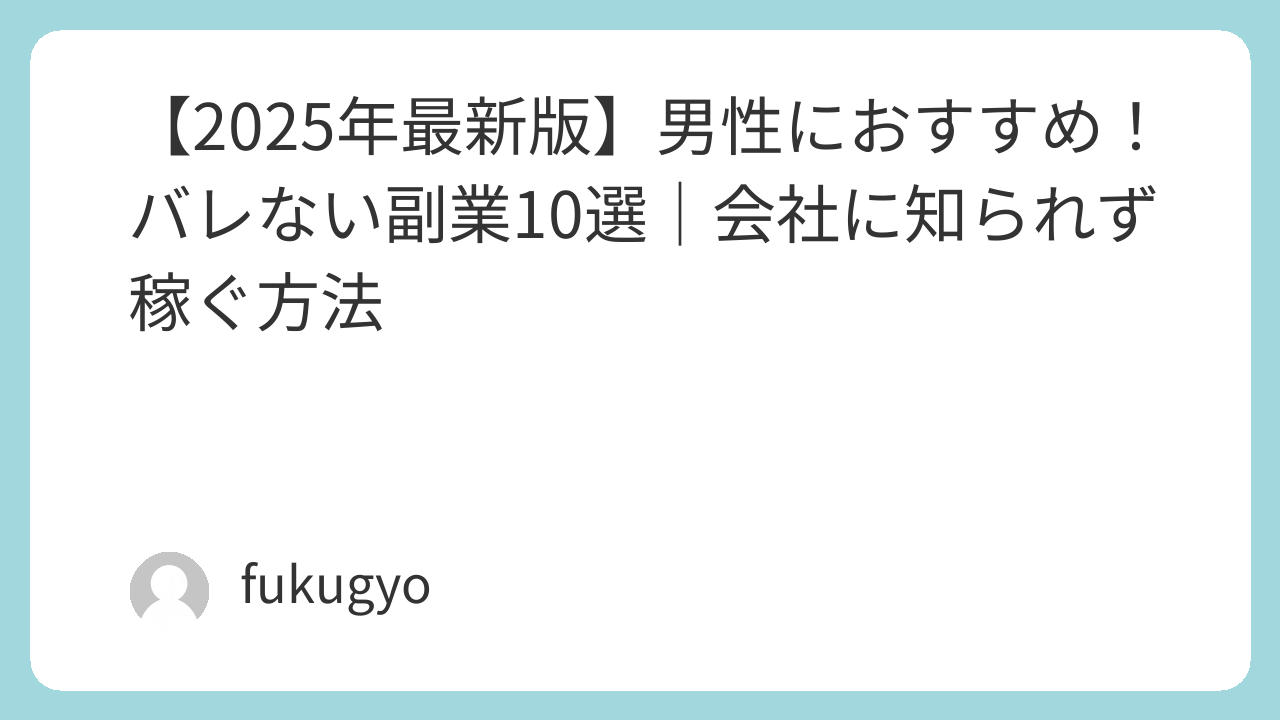 「副業を始めたいけど、会社や家族にはバレたくない」——そんな悩みを持つ男性は年々増えています。