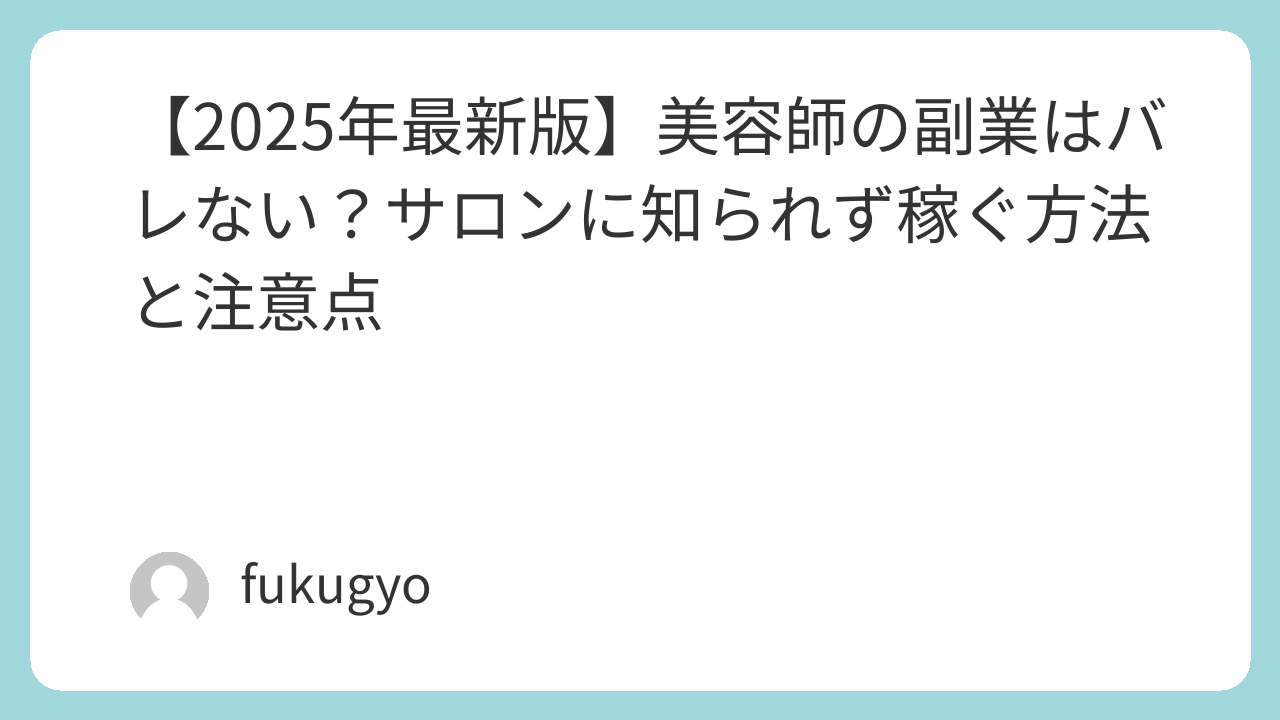 この記事では、美容師の副業がバレる原因と、バレずにできる安全な副業を2025年の最新情報で解説します。
