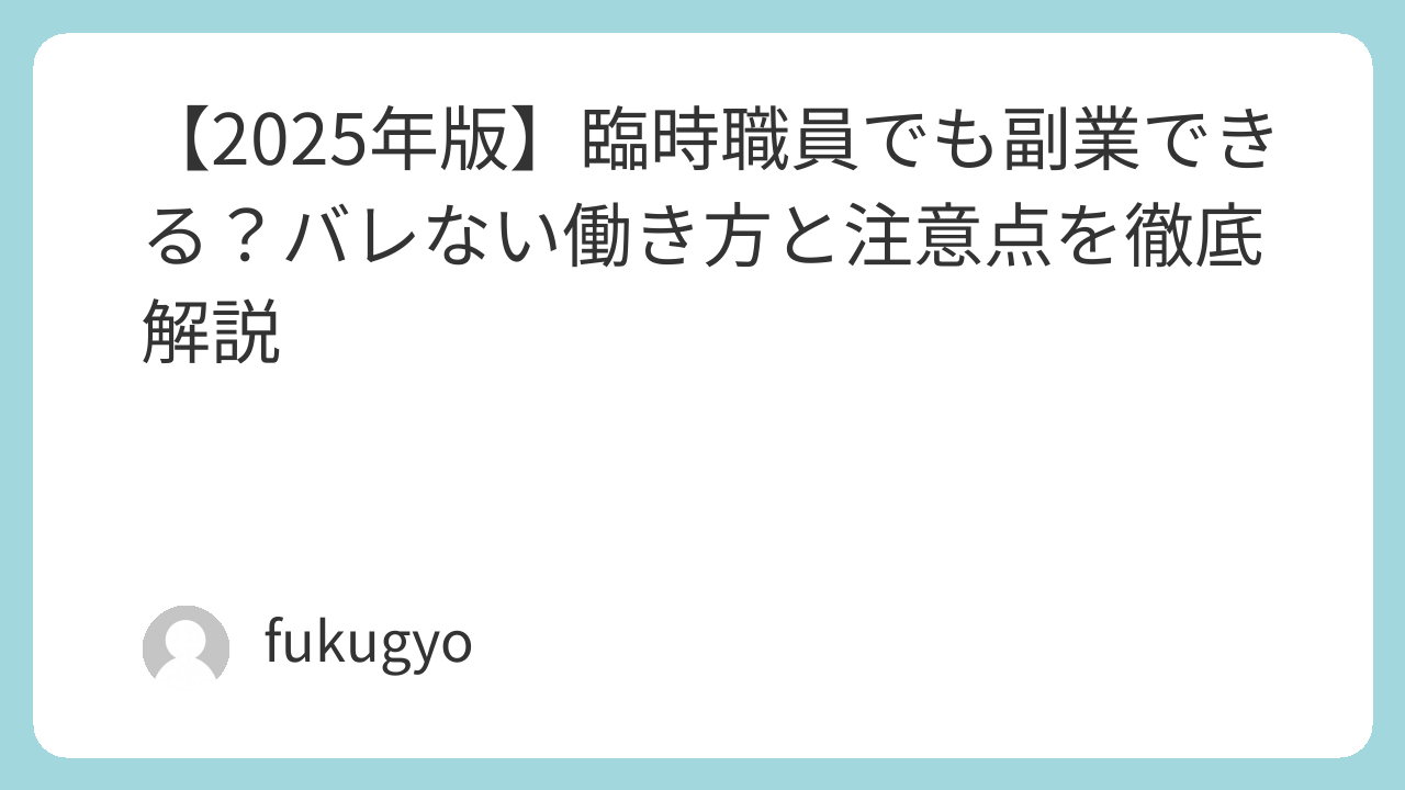 この記事では、臨時職員の副業ルール・バレる仕組み・バレないための対策と安全な副業例をわかりやすく解説します。