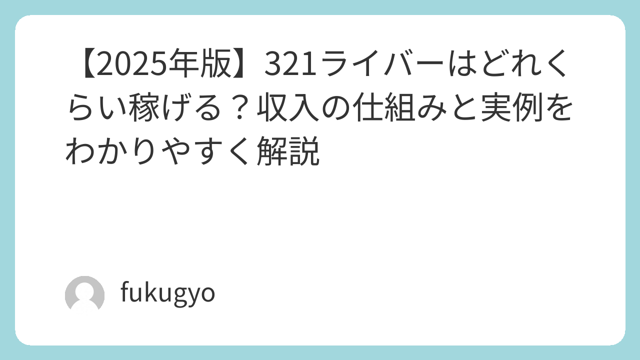 この記事では、具体的な金額を断定するのではなく、321ライバーの収入の仕組みや稼ぎ方のイメージをわかりやすく整理していきます。