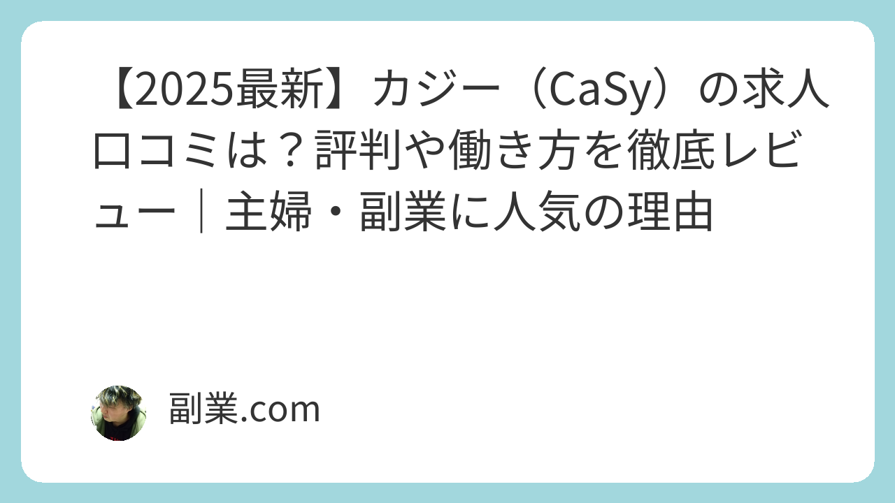 家事代行サービスカジー(CaSy)の求人口コミについて、実際に働いた人のリアルな声をまとめました。 「求人の評判は?」「働きやすい?きつい?」など、応募前に知りたいポイントを整理しています。