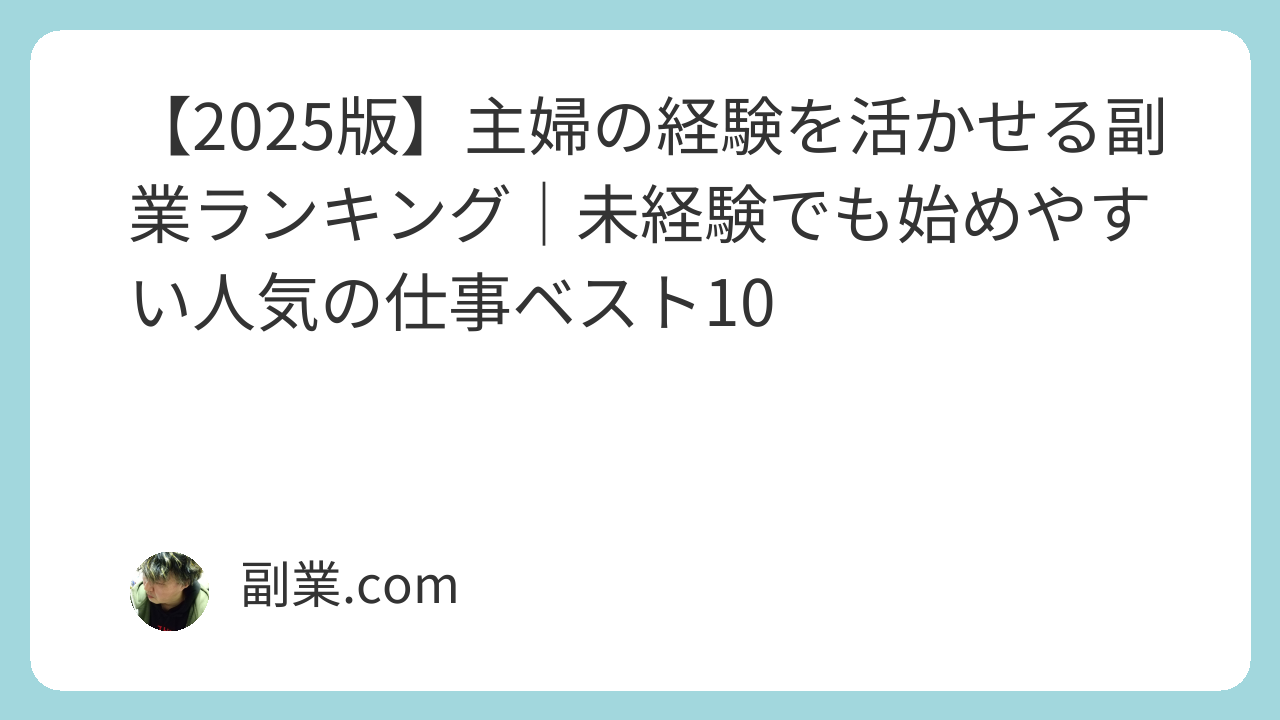 「主婦の経験を活かして副業がしたい」「家事や育児スキルで稼げる仕事を知りたい」 そんな方に向けて、主婦の強みを活かせる副業をランキング形式で紹介します。 自宅でできる仕事・隙間時間で稼げる仕事・即金性の高い仕事を厳選しました。