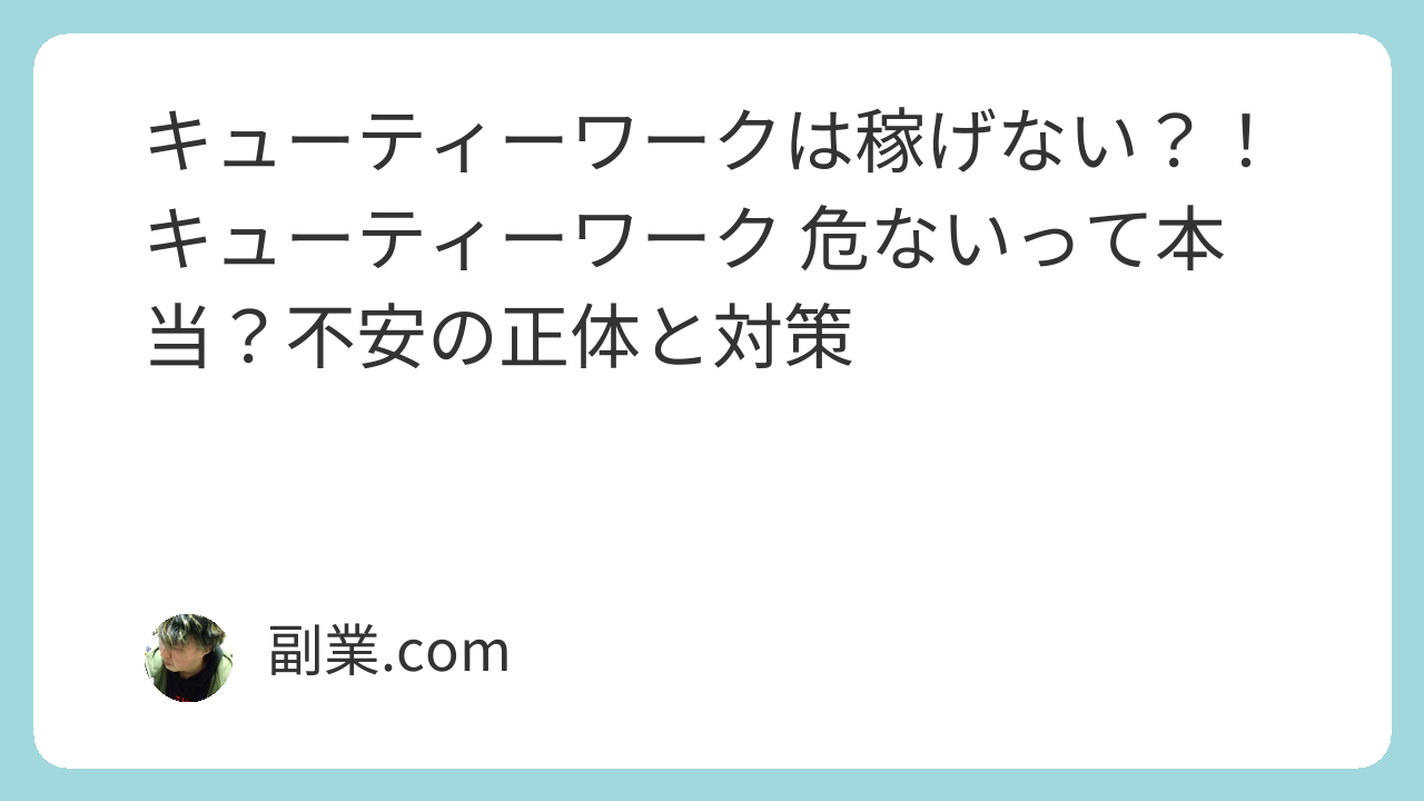 キューティーワークは稼げない?!キューティーワーク 危ないって本当?不安の正体と対策