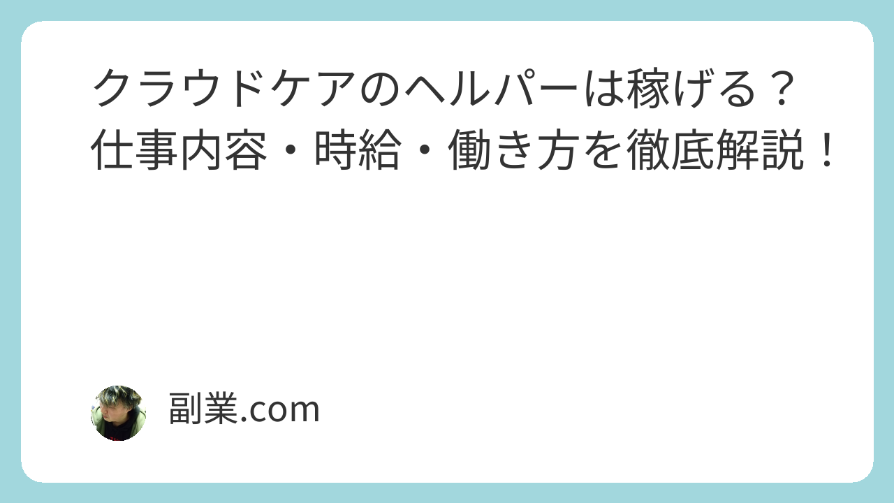 本記事では、クラウドケアのヘルパーとして働くための条件、仕事内容、時給、メリット・デメリットまで分かりやすく解説します。