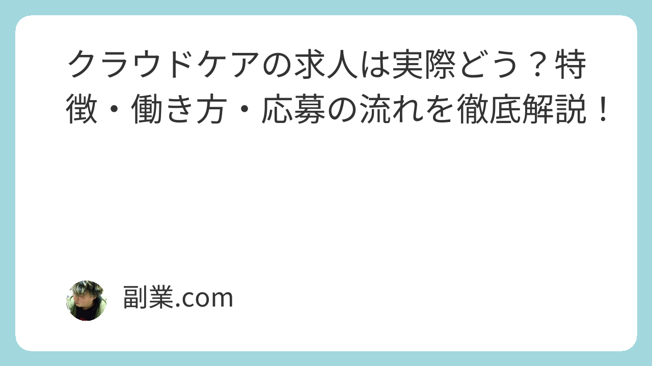 クラウドケアで募集されている求人は、主に以下のような内容です。
