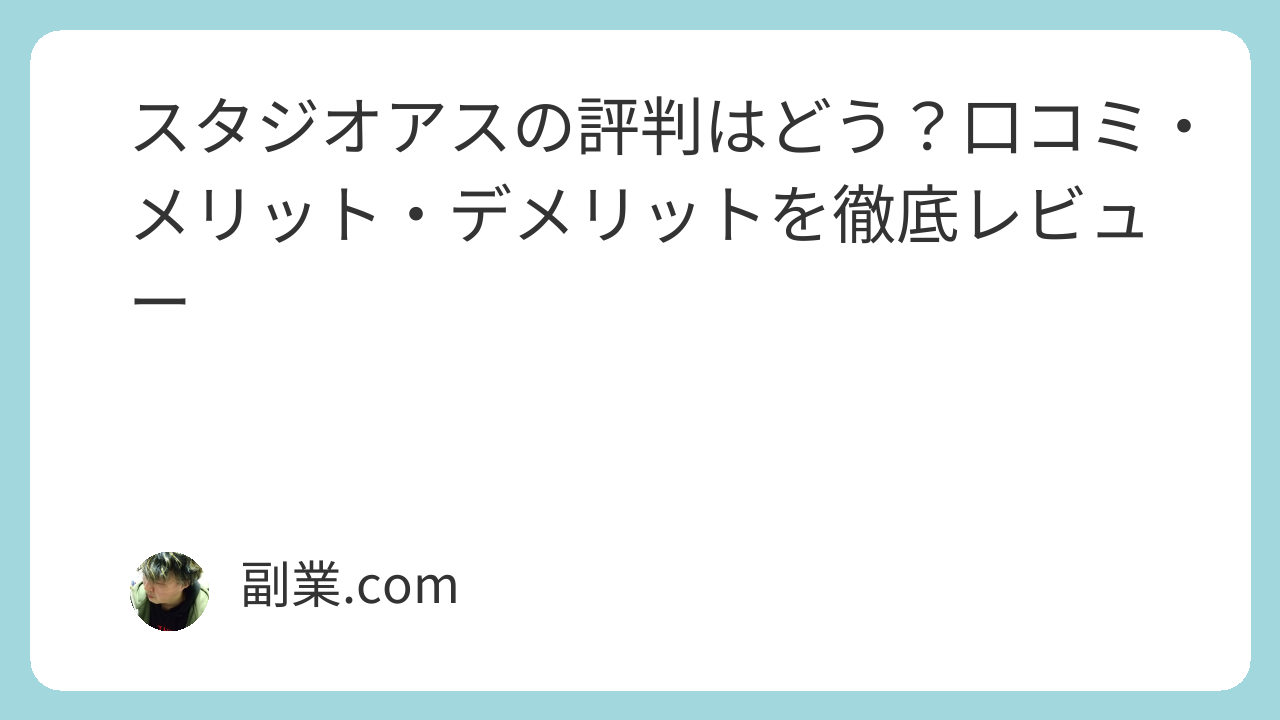 スタジオアスの評判はどう?口コミ・メリット・デメリットを徹底レビュー