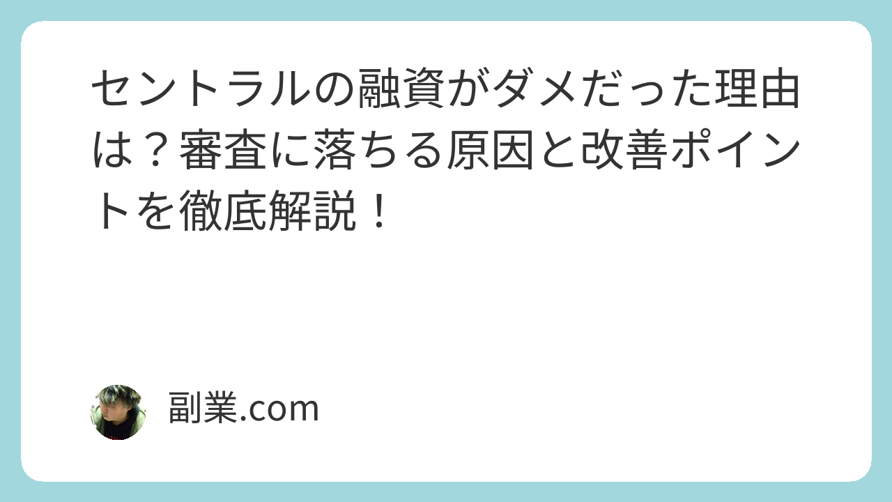 この記事では、セントラルの融資が通らなかった主な原因や、