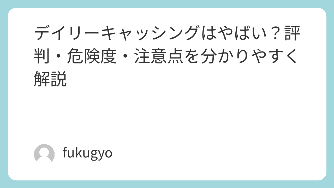 デイリーキャッシング,やばいというキーワードで不安になっている方に向けて、実態と注意点をまとめました。