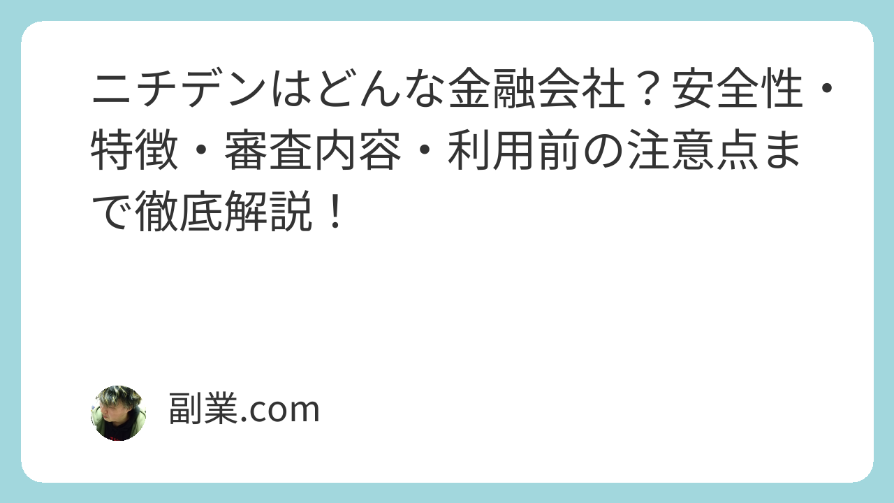 この記事では、ニチデンの特徴・安全性・審査内容・必要書類・利用前の注意点を初心者向けにわかりやすく解説します。
