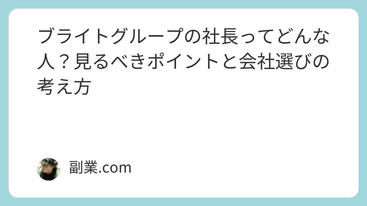 - ブライトグループのような会社の「社長」を見るときのチェックポイント