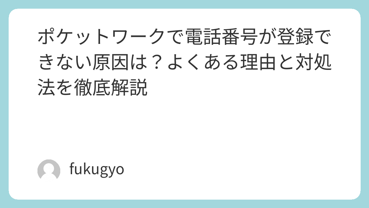 この記事では、「ポケットワーク 電話番号 登録できない」というキーワードが気になる方向けに、