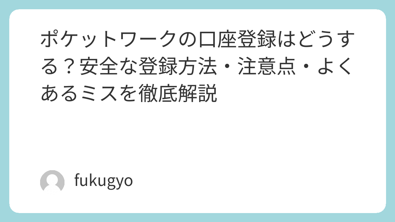 「ポケットワーク 口座登録」が気になる方向けに、登録手順・注意点・よくあるミスを解説しました。