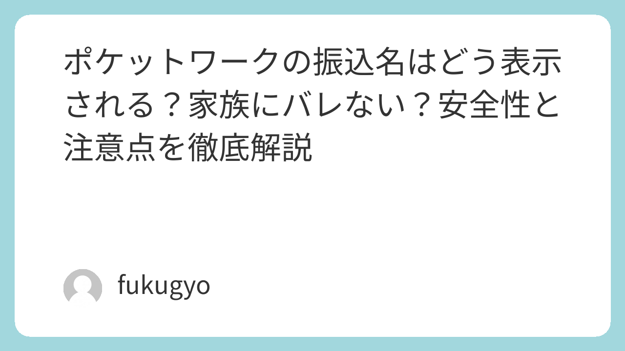 ポケットワークの振込名はどう表示される?家族にバレない?安全性と注意点を徹底解説