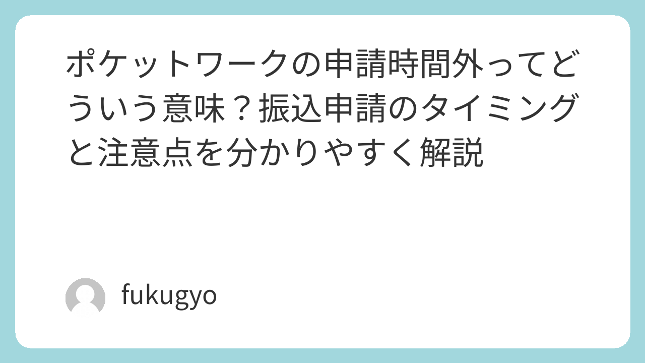 ポケットワークの申請時間外ってどういう意味?振込申請のタイミングと注意点を分かりやすく解説