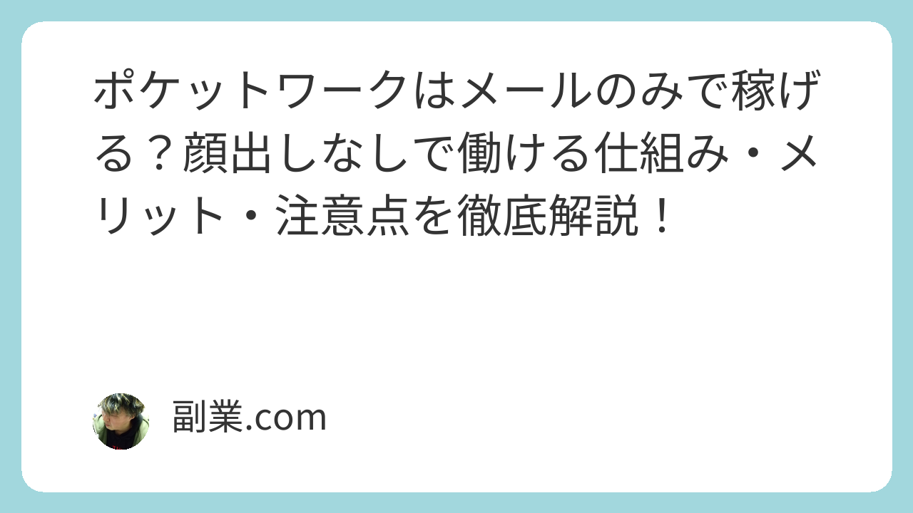 本記事では、メールのみのお仕事内容、稼げるかどうか、メリット・デメリットを初心者向けに解説します。