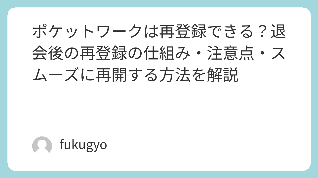 ポケットワークは再登録できる?退会後の再登録の仕組み・注意点・スムーズに再開する方法を解説