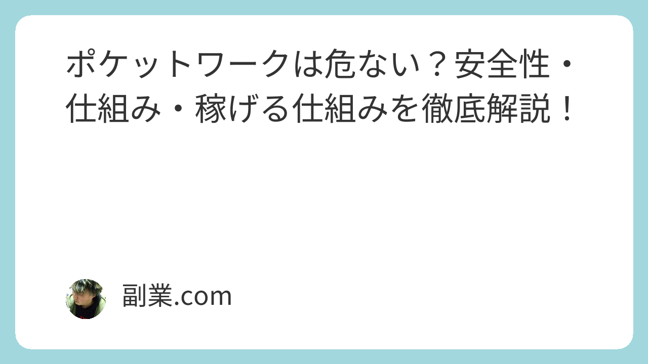本記事では、ポケットワークの仕組み、危険と言われる理由、安全性、実際に注意すべき点をわかりやすくまとめました。