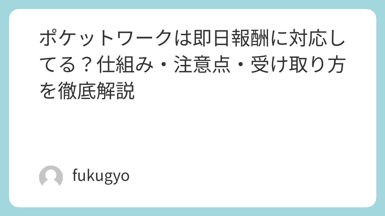 この記事では「ポケットワーク 即日報酬」のキーワードに基づき、