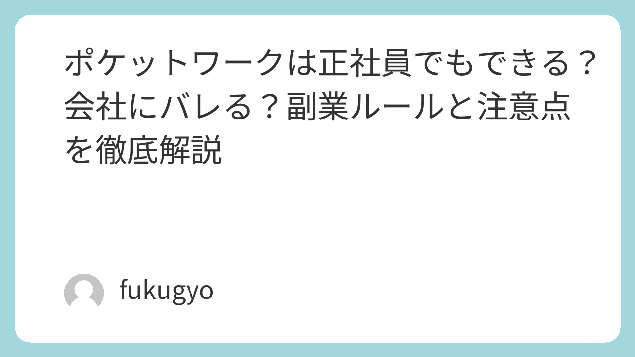 ポケットワークは正社員でもできる?会社にバレる?副業ルールと注意点を徹底解説