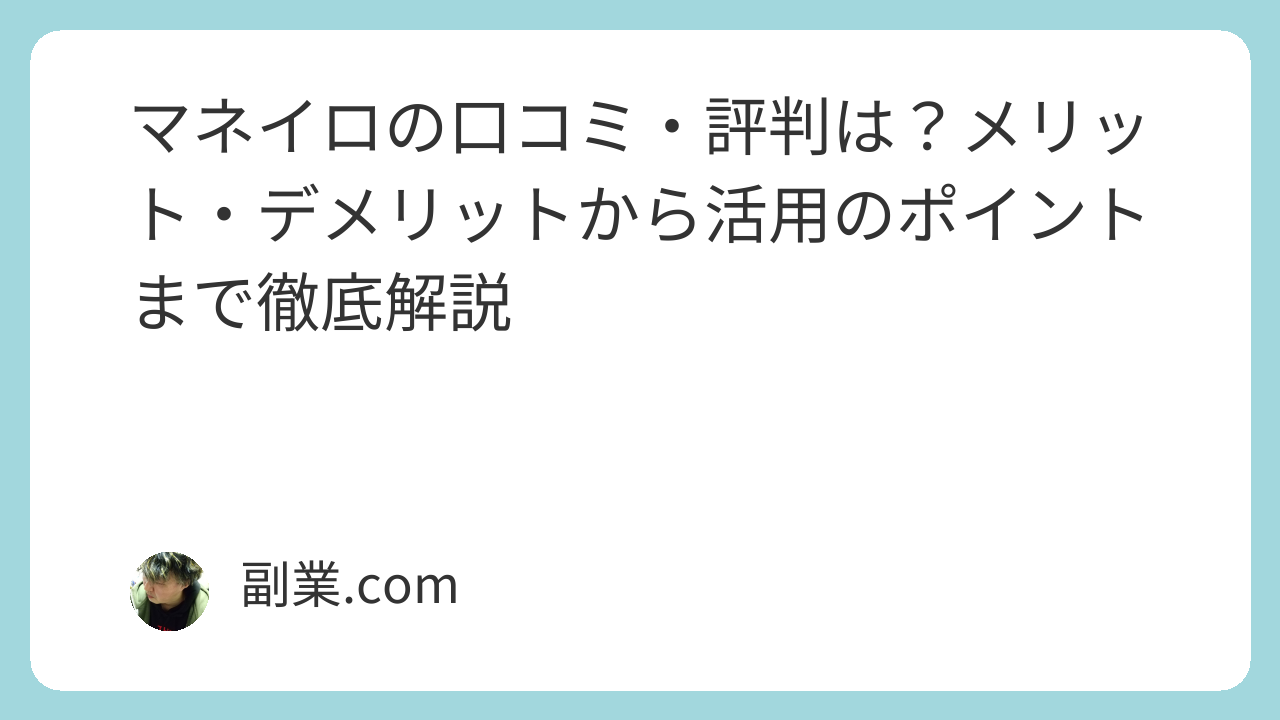 本記事では、実際の口コミ・評判をもとに、マネイロのメリット・デメリット、さらに副業・在宅ワーク視点での活用ポイントもあわせてご紹介します。