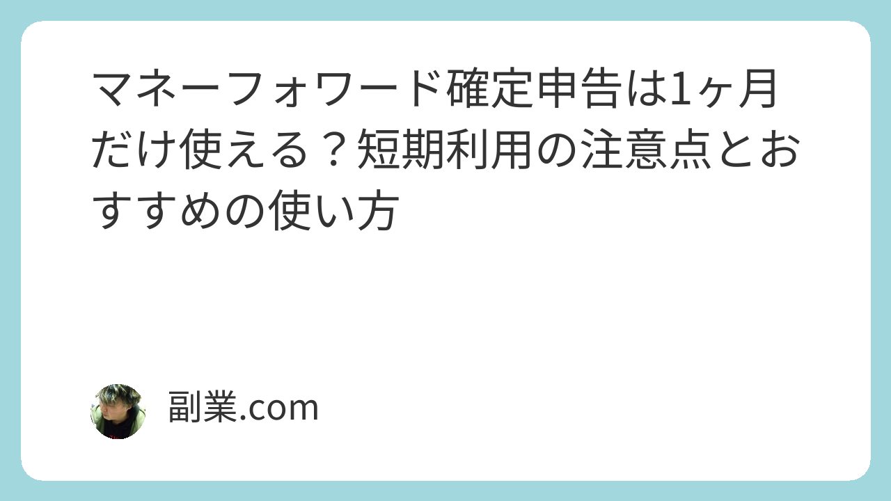 この記事では「マネーフォワード確定申告 1ヶ月だけ」というキーワードをテーマに、